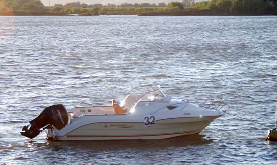 O barco 32 fundeado na Palhota em Salvaterra de Magos.